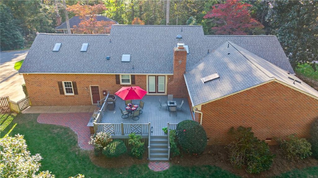 Updated one-level brick home in Kingsmill with an efficient layout and quality upgrades throughout. The kitchen features granite countertops, solid maple cabinetry with custom pull-outs, gas cooking, new appliances, plantation shutters, and a custom backsplash, open to the family room with wood-burning fireplace. The first-floor primary suite offers vaulted ceilings and two walk-in closets with custom organizers. A private guest suite includes a full bath, while two additional bedrooms share a hall bath. Upstairs bonus room with wet bar and Bodega wine cooler is ideal as a media room, office, or guest space. Wood floors and fresh paint throughout. Major updates include replacement windows, roof, 2025 dual Trane HVAC, 200-amp panel, irrigation, and GE washer/dryer. Trex deck, fenced yard, Leaf Guard gutters, new driveway, brick walkway, and professional landscaping.